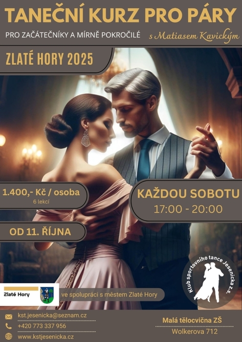 Úvod > O obci > Aktuality > Kurz společenských tanců pro dospělé začátečníky a mírně pokročilé ve Zlatých Horách